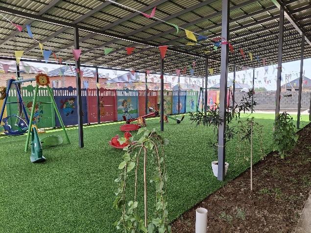 Балабақша ұжымы білікті педагогтардан, жоғары санатты тәрбиешілерден, аспазшылар және медбикелерден құралған. Біздің балабақшада мектеп жасына дейінгі баланы тәрбиелеу мен оқыту саласында заман талабына сай, уақыт сұранысын қанағаттандыратын жаңа бағдарламалармен, технологиялармен қамтамасыз етілген. Балабақшада үш мезгіл тамақпен қамтамасыз етілген. Жыл бойы балаларға жеміс-жидектер және сүт өнімдері беріледі. Барлық ертеңгіліктер, іс-шаралар ата-аналардың қатысуымен өткізіледі. Біз ата-аналармен біргелікте балаларды Отан сүйгіштікке тәрбиелейміз.